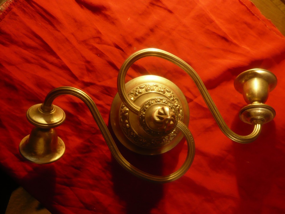 Corp de Veioza in forma de Sfesnic cu 2 brate frumos ornamentate.Nu are fire electrice , are doar o urma de fasung vechi