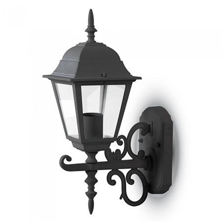 Descriere: Corp pentru iluminat cu montaj pe perete Soclu: E27 (becul nu este inclus) Putere maxima utilizabila pentru bec: 60 W Grad de protectie: IP44 Material: aluminiu + sticla Culoare: negru mat Dimensiuni: 225 x 400 x 148 mm Greutate: 1.1 kg