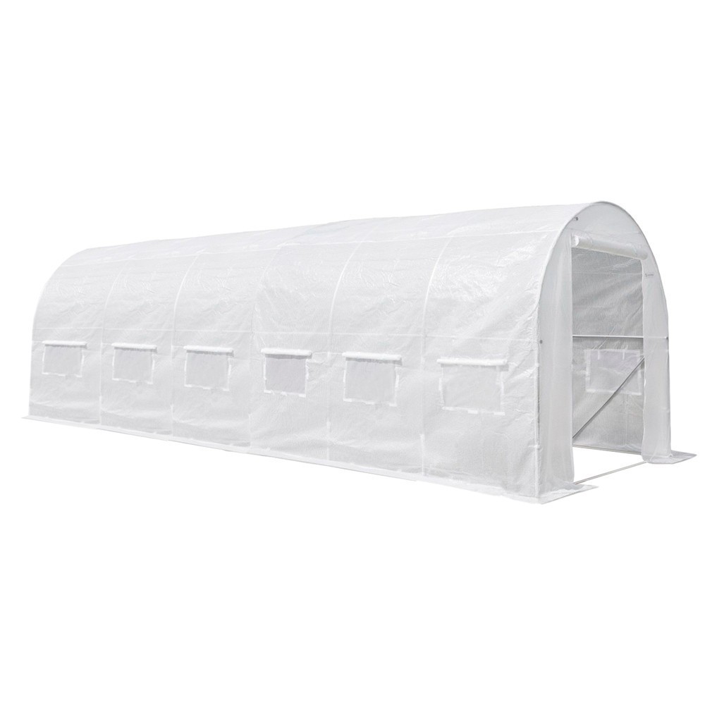 Cortul modern din folie este echipat cu o ușă pliabilă practică, care facilitează accesul. Cele 12 orificii de ventilație laterale ale cortului sunt prevăzute cu plasă pentru a împiedica pătrunderea insectelor, asigurând în același timp o circulație adecvată a aerului. Ferestrele ajută la reglarea umidității, crescând astfel randamentul culturilor. Cortul din folie poate fi utilizat în orice condiții meteorologice, fiind o soluție ideală pentru cultivarea plantelor în grădină sau pe proprietate.