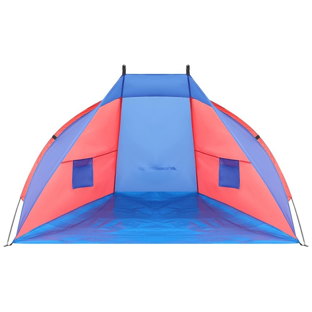 Cort plaja pentru 2 persoane, cu protectie UV si podea izolanta, 200x120x120 cm, albastru si roz