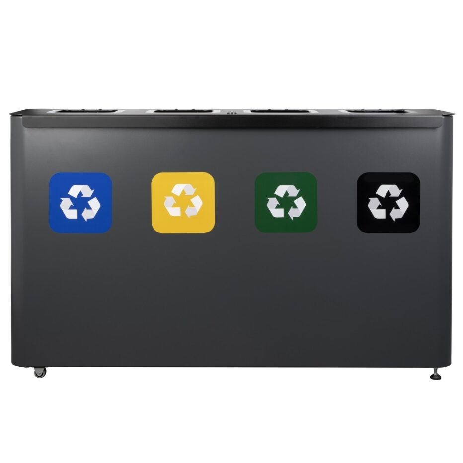 Stația de sortare a deșeurilor Eko Star Station cu patru compartimente este soluția ideală pentru spațiile în care sortarea eficientă a deșeurilor, o estetică modernă și confortul utilizator