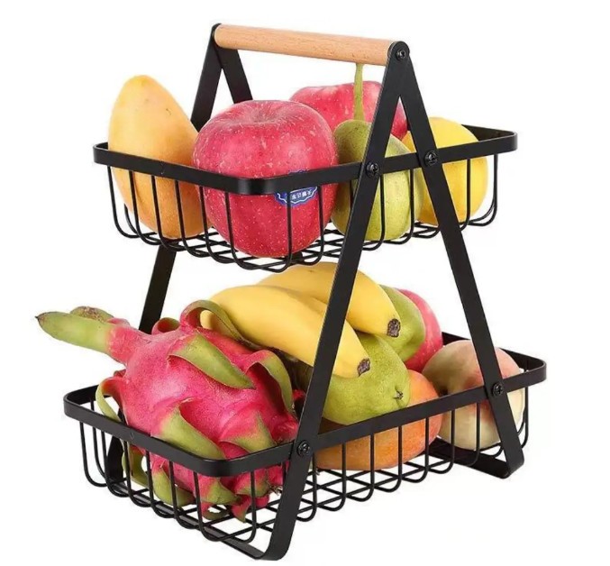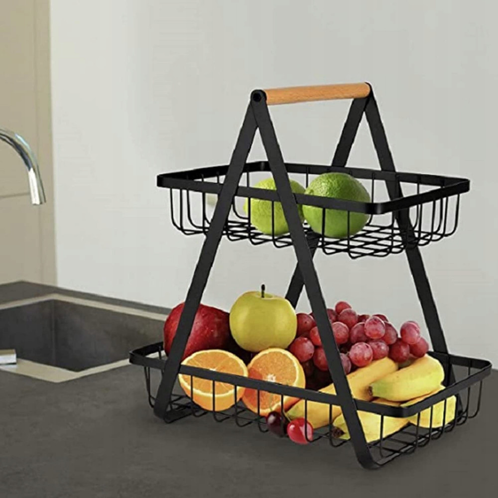 ✅ Cosul cu fructe cu 2 niveluri este realizat din metal lacuit negru. Vasul afiseaza perfect fructele sau legumele asezate in el, creand un decor natural. Datorita acestui fapt, gustarile sanatoase sunt mereu la indemana.