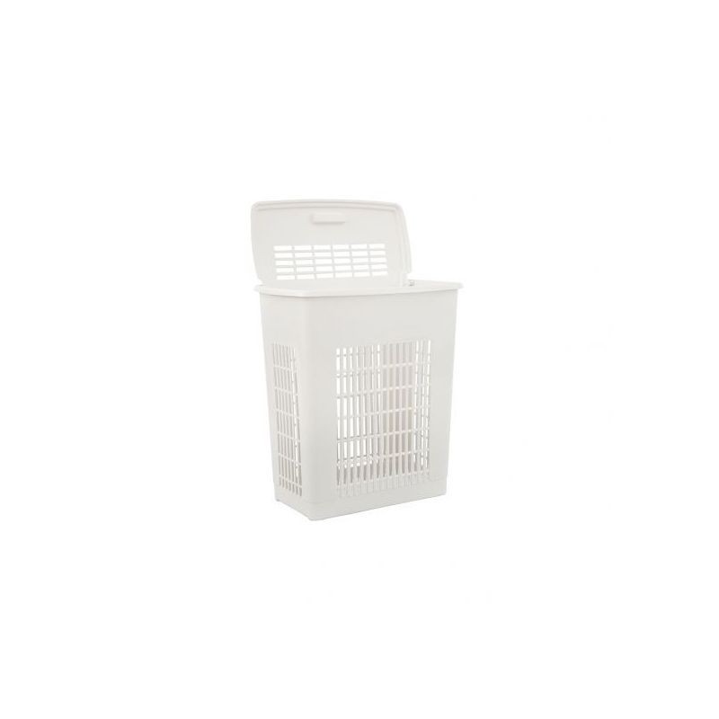 Cosul de rufe cu capac, din plastic foarte rezistent, are o forma