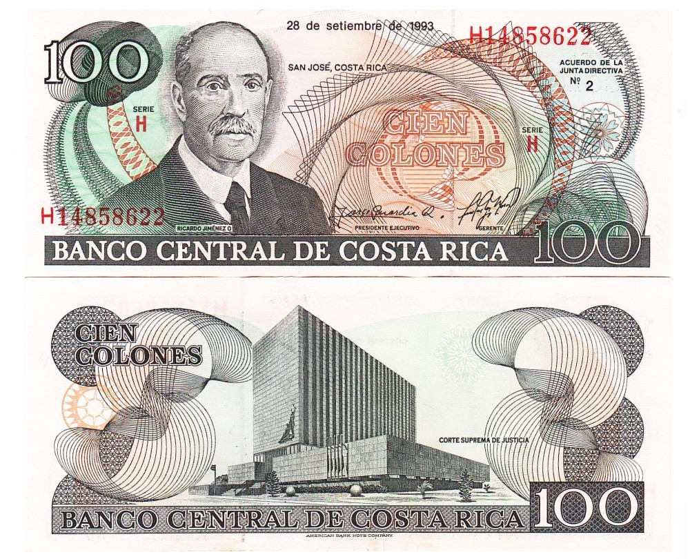 -Costa Rica 100 Colones 1992 P-258 UNC