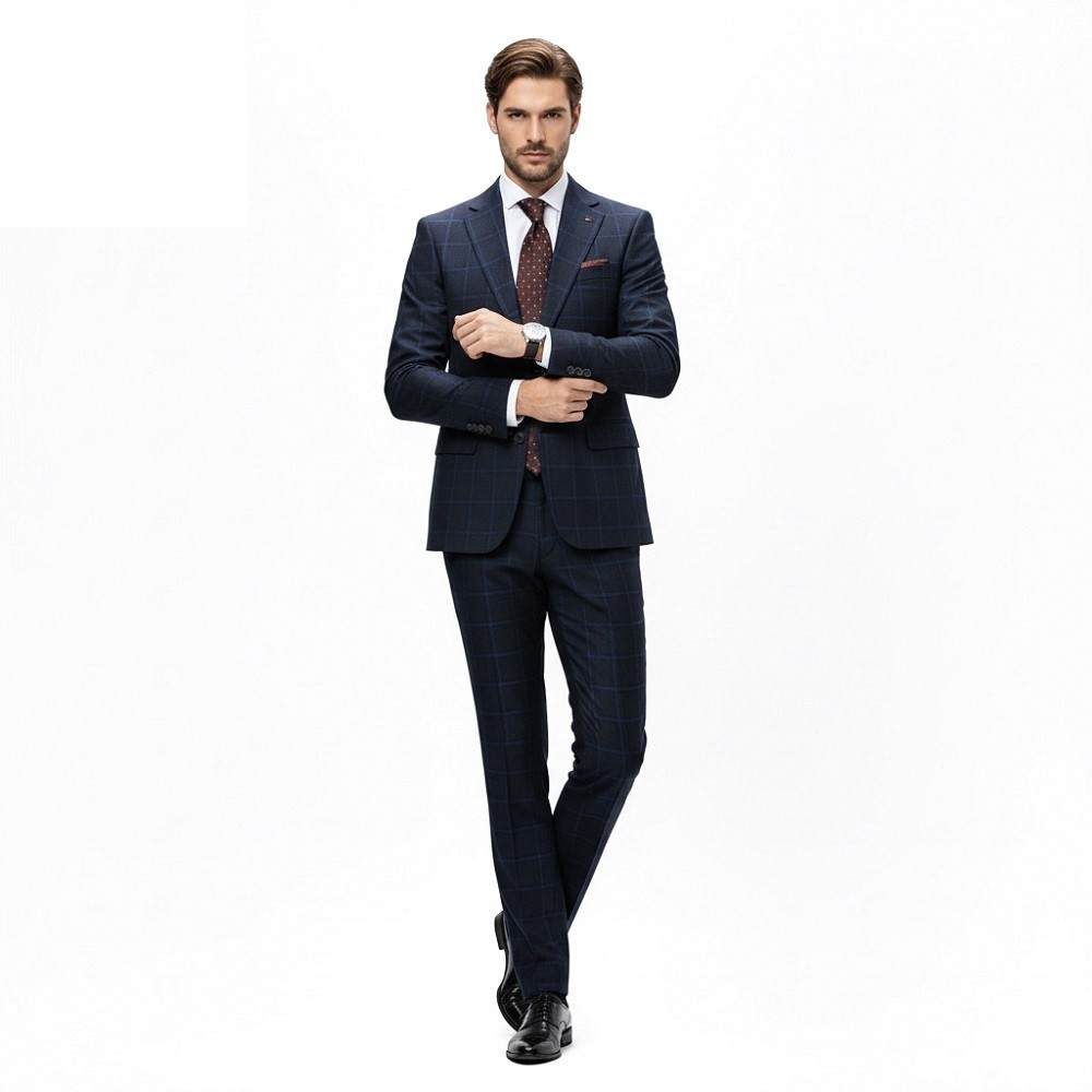 Costumul bleumarin cu carouri este alegerea ideală pentru bărbatul modern care apreciază eleganța discretă și rafinamentul cotidian. Cu o croială slim și un design contemporan, acest costum oferă o siluetă bine definită și un aspect relaxat, dar sofisticat. Țesătura fină din 97% lână și 3% elastan garantează confort și libertate de mișcare, fiind perfectă pentru birou, întâlniri sau evenimente casual-elegante.