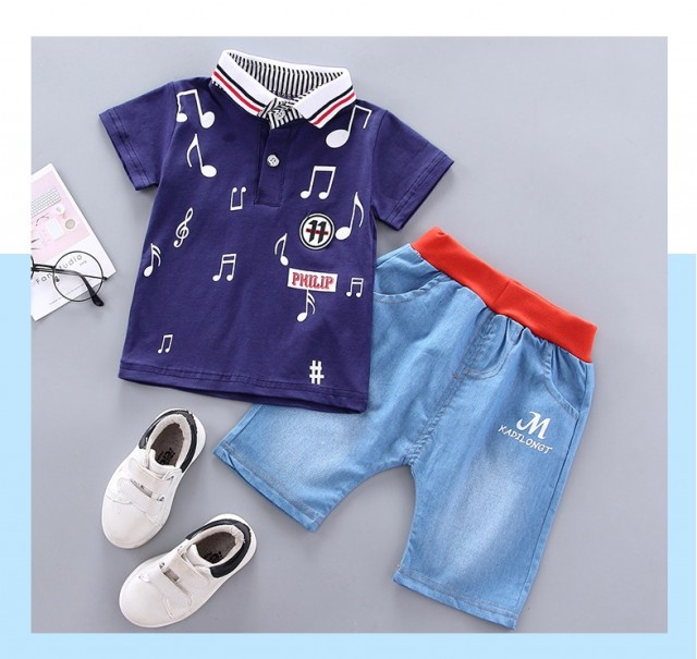- tricou bleumarine tip polo, imprimat cu note muzicale;