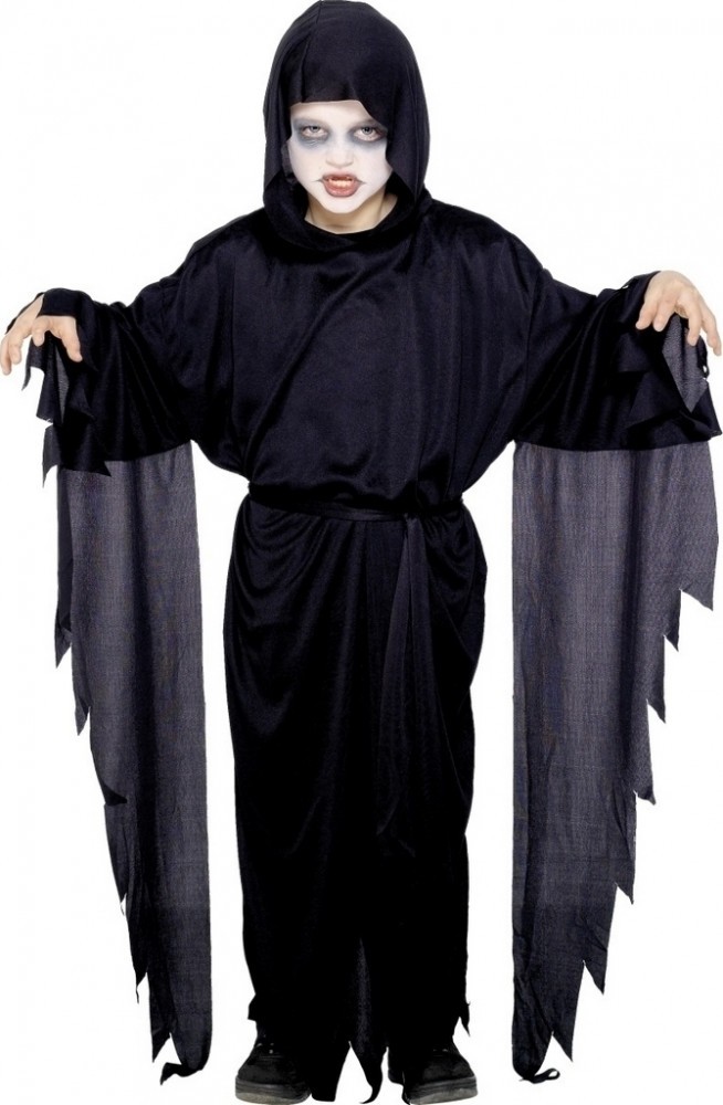 Costum negru screamer, pentru petrecerile de Halloween. Costumul include:- Roba cu gluga.- CureaMarimea: pentru copii 4-6 ani (aprox 115-128 cm inaltime).*Costumul nu include cutitul din plastic si machiajul - se pot achizitiona separat.