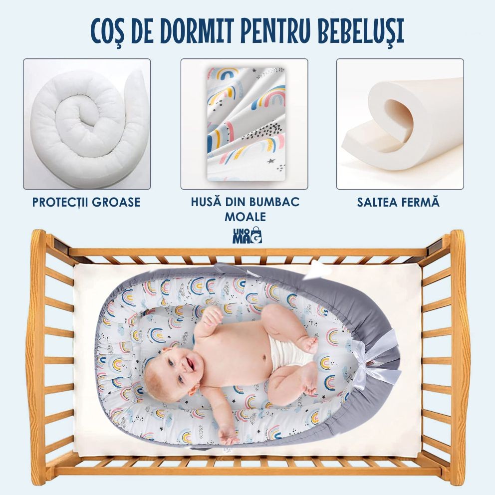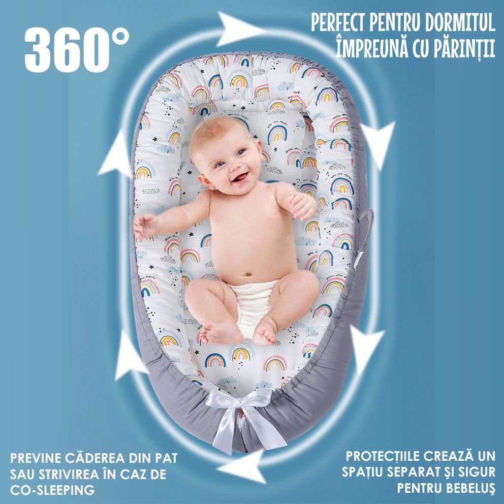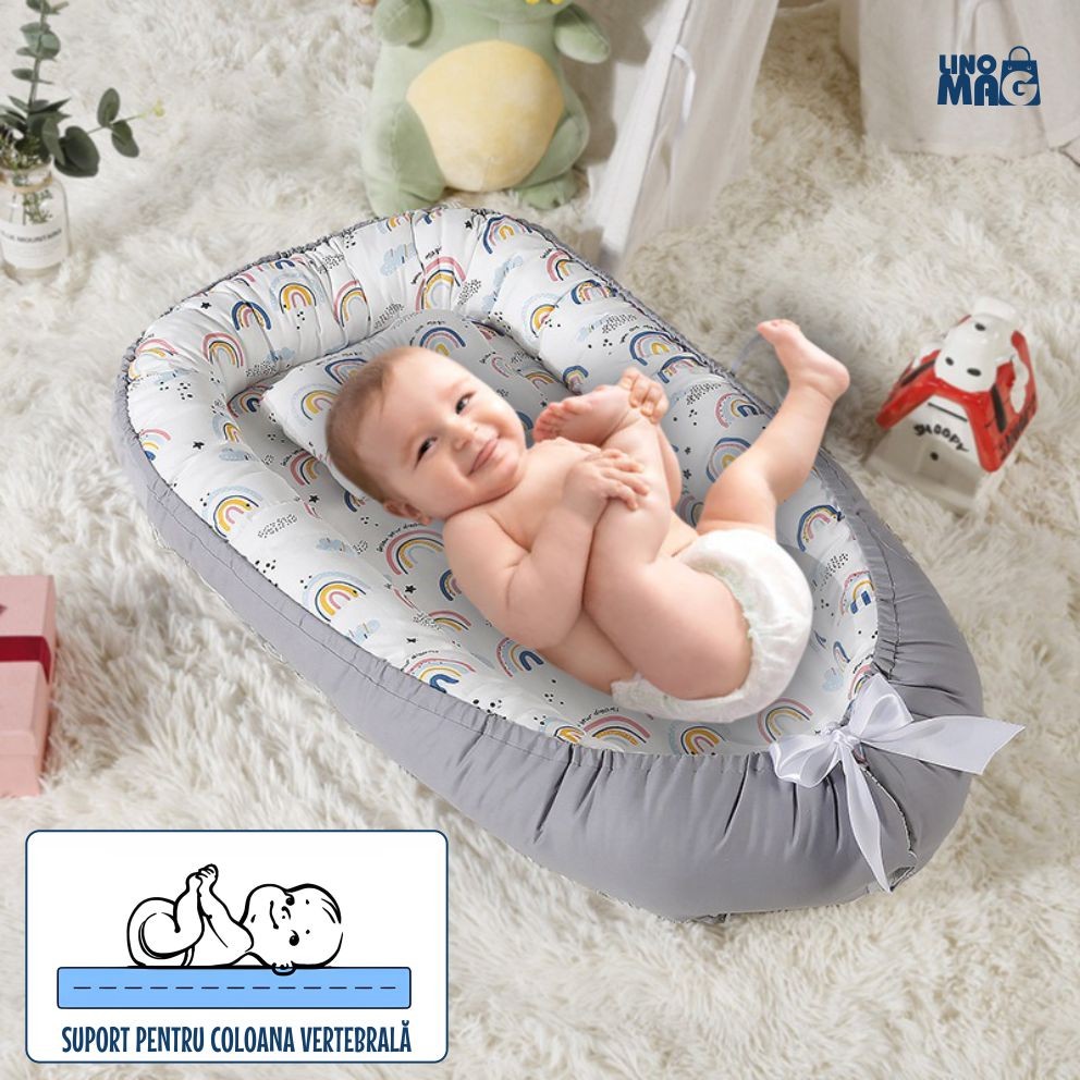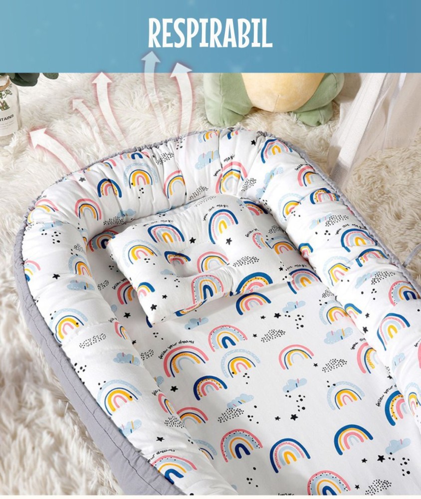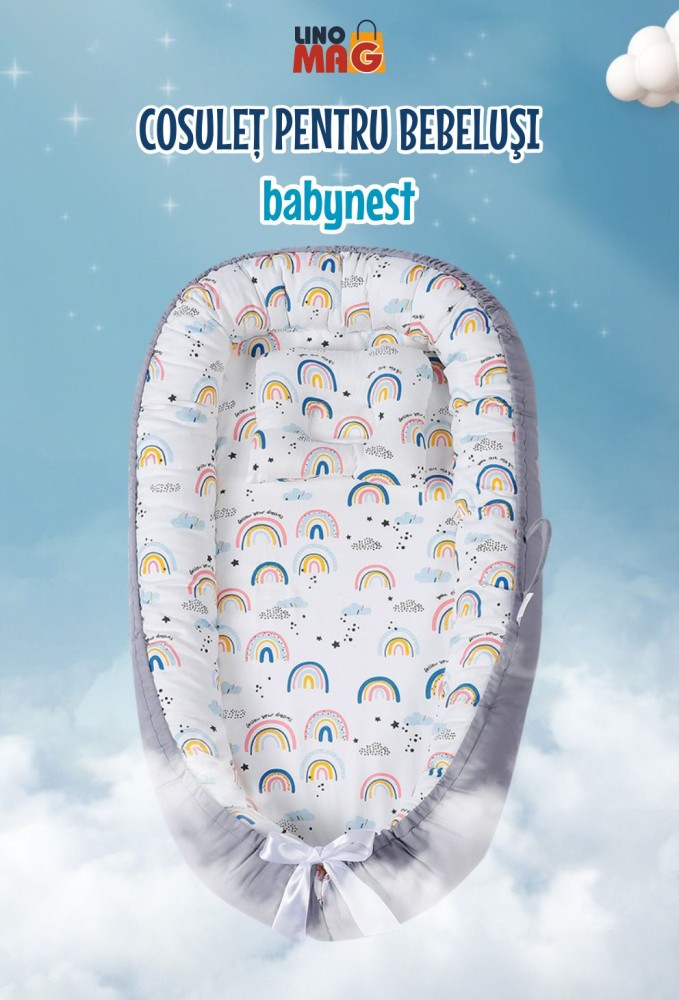 Acest Baby Nest moale și confortabil, este creat special pentru a oferi bebelușului tău un mediu sigur și relaxant pentru somn și joacă. Designul ergonomic imită senzația din burtica mamei, ajutând la reducerea anxietății și oferind un somn odihnitor. Realizat din materiale respirabile și hipoalergenice, protejează pielea sensibilă a micuțului. Ideal pentru utilizare acasă, în pătuț sau pe canapea, dar și în călătorii datorită designului său portabil.