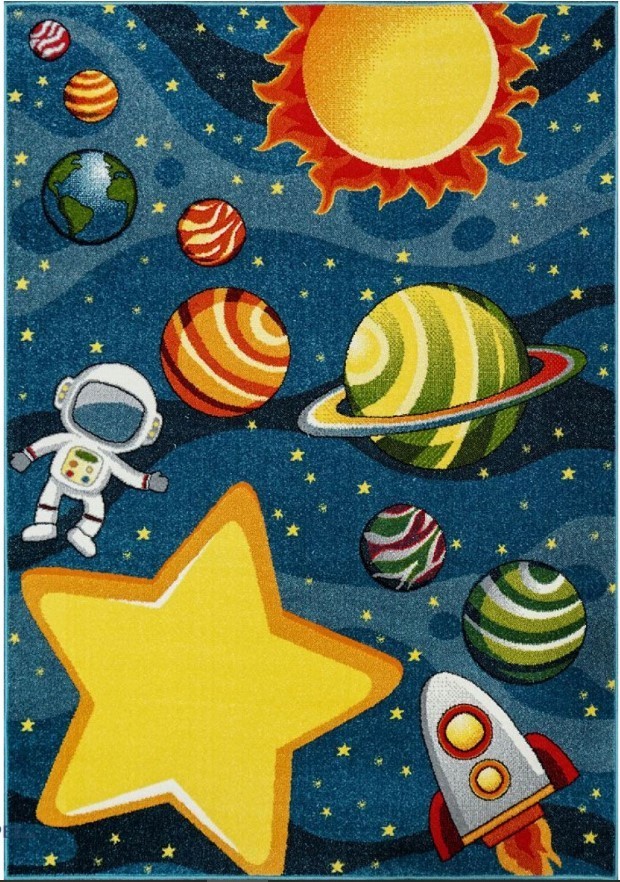 Covor Camera Copii Model Kolibri 11441-142, Marime 120 x 170 cm, Albastru, Inaltime Fir 9 mm, Antialergic, Polipropilena, Gradinita, Cresa, Loc de Joa