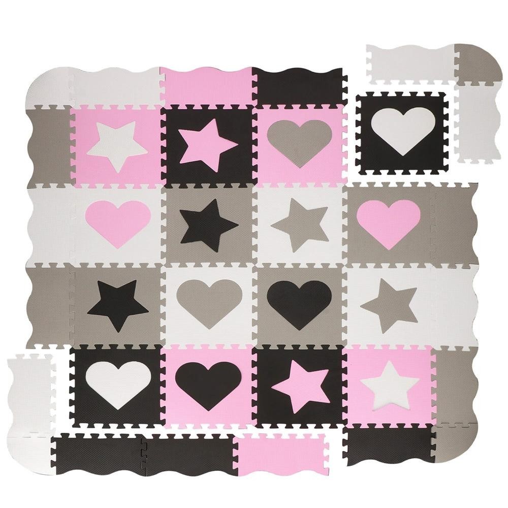 Design: Forme Culoare: roz, gri, alb, negru Grosime: 1 cm Dimensiunea totala atunci cand este desfasurat plat cu bordura: 150x150 cm Dimensiune cand este pliata: 30x30x30 cm Numar de puzzle-uri: 16 Numar de margini: 16+4 mai mici Numarul tuturor pieselor din set: 52 de piese Bordurile pot fi montate in pozitie plata si verticala Certificare: CE Material: spuma EVA Pentru utilizare: pentru copii cu varsta de peste 10 luni Un covoras din spuma cu un design educativ este perfect pentru camera unui copil. Va stimula imaginatia copiilor, ii va proteja de solul rece in timpul jocului sau le va permite sa construiasca structuri dupa propriile idei. In plus, este ideala pentru copiii care abia invata sa stea in picioare sau care stau nesigur si inca mai cad sau se rastoarna uneori in timpul jocului. Material netoxic Izoleaza impotriva solului rece Nu absoarbe apa Usor de curatat Durabil Stimuleaza creativitatea Amortizeaza miscarile copilului Posibilitatea de a construi un cub din puzzle Ocupa foarte putin spatiu atunci cand este pliat Covorasul din spuma este format din 52 de elemente (puzzle-uri, umplutura de puzzle si margini), care, atunci cand sunt unite, vor crea un nou loc de joaca preferat pentru cei mai mici membri ai familiei. Covorasul este fabricat din material netoxic si are o grosime de pana la 1 cm, asigurand o izolare excelenta fata de solul rece, dar si amortizand miscarile unui copil care abia invata sa mearga. Puzzle-urile pliabile sunt o modalitate excelenta de a va distra creativ si captivant. Piesele detasabile sunt perfecte pentru a se juca cu recunoasterea formelor - cel mic poate scoate piesele si le poate potrivi fara niciun ajutor. Datorita faptului ca puzzle-urile pot fi asezate atat pe plat, cat si pe verticala, ele pot fi folosite, de exemplu, pentru a crea un parc de joaca.