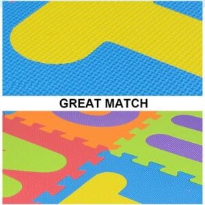 Pe langa rolul de protectie, setul de 36 piese are si rol educativ, avand design cu litere si cifre ce se pot detasa, cu care se pot face diverse activitati: puzzle tip incastru, invatarea cifrelor, literelor si culorilor, operatii matematice, scrierea cuvintelor.