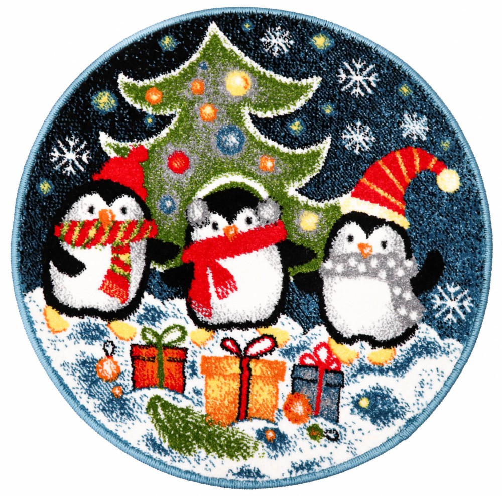 Covor Rotund Camera Copii Model Pinguini 11504-140, Marime 67 x 67 cm, Multicolor, Inaltime Fir 9 mm, Antialergic, Polipropilena, Gradinita, Cresa, Lo