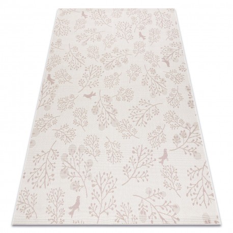 Covor sisal Flat 48774/526 Frunze Păsări crem roz, 160x230 cm