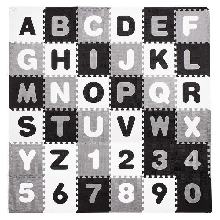 Covor spuma ptr copii, EVA gri cu negru, model alfabet si numere, 172x172x1cm, Springos