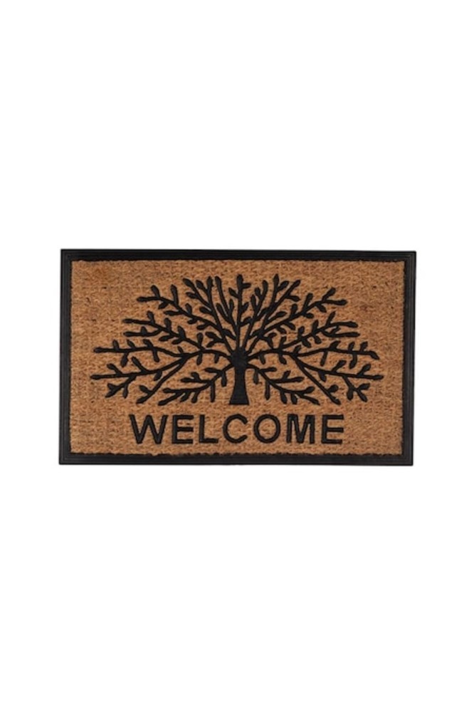 Covoraș de intrare cu inscripția „Bun venit” și designul Copacului Vieții, fabricat din cauciuc de înaltă calitate și fibră de cocos.; Prezintă un strat antiderapant special pe partea inferioară, fiind potrivit pentru toate tipurile de podea.; Menține igiena la ușa de la intrare prin absorbția prafului și a umezelii de pe încălțăminte.; Ideal atât pentru uz casnic, cât și profesional.; Include elemente absorbante pentru praf și umezeală, proprietăți de uscare rapidă și caracteristici antiderapante.; Dimensiuni: 75x45x0,80 cm.