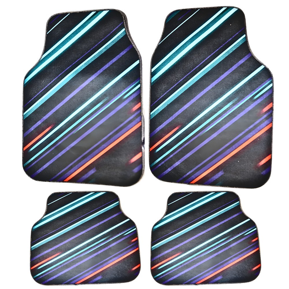 Covorașe auto universale DECOMAT – set 4 bucăți lavabile, antiderapante, cu design futurist „Neon Stripes”
