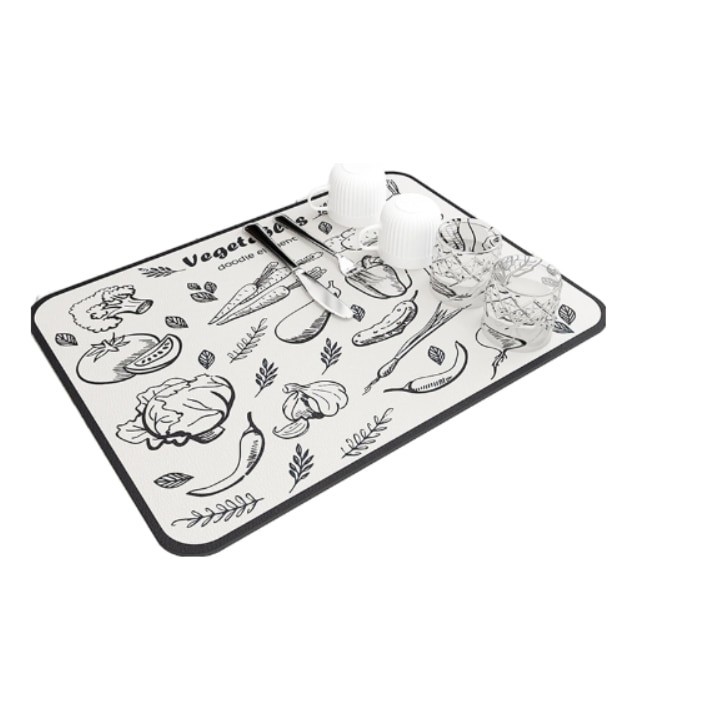 Covorasul super absorbant pentru scurgerea si uscarea vaselor din diatom reprezinta o solutie inovatoare si eficienta pentru bucataria ta. Acest covoras este realizat din material de diatomit, un tip de roca sedimentara cu proprietati absorbante superioare, care permite un proces de uscare rapid si igienic al vaselor.