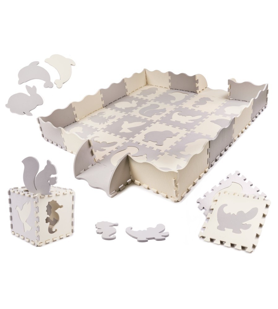 spumă EVA, format din 36 de piese mari. Designul modern în nuanțe de gri și ecru îl face să