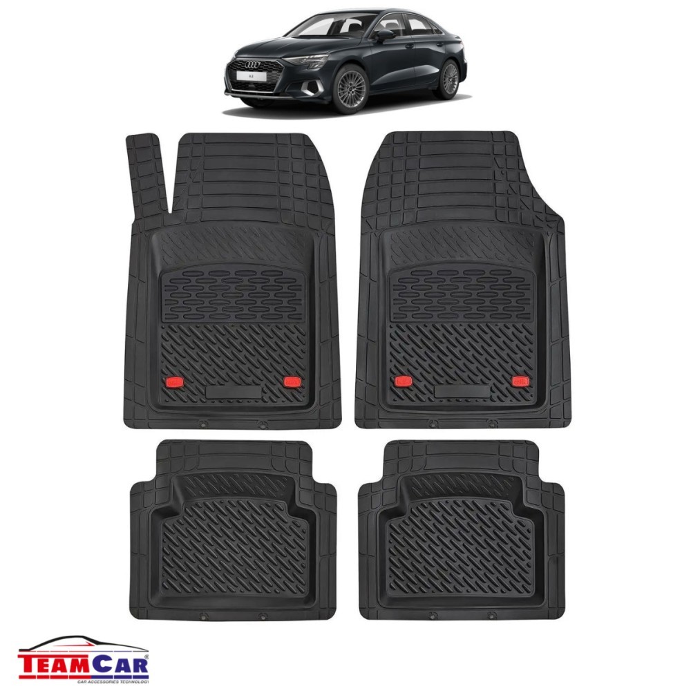 Description tagset covorase cauciuc audi a3 8y sedan 2020–2025, 100% reciclate, margini 3cm, fara miros.