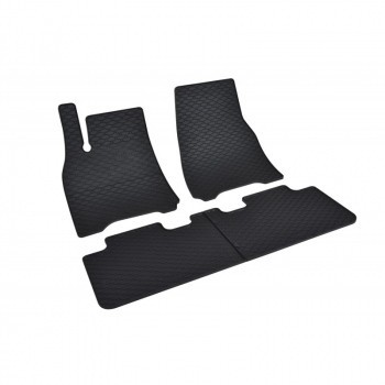 Covorase (presuri) cauciuc Tesla Model Y, producator Rigum Cehia Presurile sunt dedicate pentru Tesla Model Y fabricatie 2021-prezent Covorase produse de Rigum special pentru Tesla Model Y sunt fabricate din cauciuc de calitate excelenta, moale, fara miros. Ele sunt proiectate dupa forma si conturul podelei masinii. Marginea are 1-1.5 cm inaltime, iar pe toata suprafata covorasului sunt celule care impiedica imprastierea apei si prafului sau noroiului. Suprafata este mata, discreta si aspectuoasa.