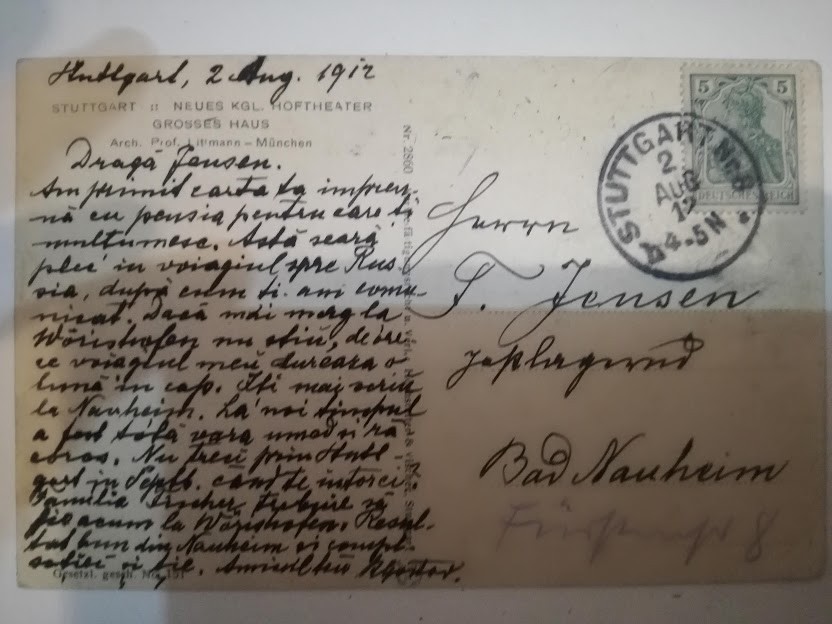 CP 1912 catre Franz Jensen ceasornicarul curtii regale romanesti, Stuttgart