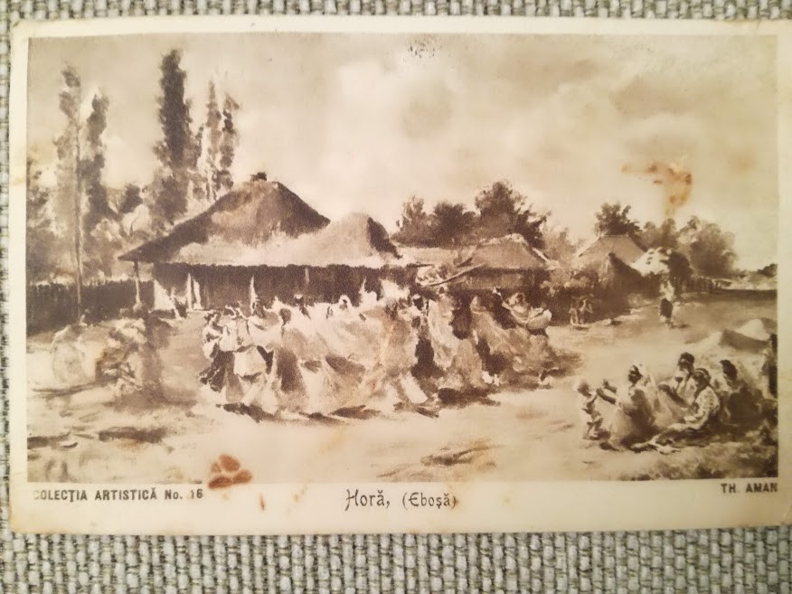 CP 1928 Hora / Th. Aman, ștampilă Cerc Studențesc Ilfovean, balul de la Fiebinți