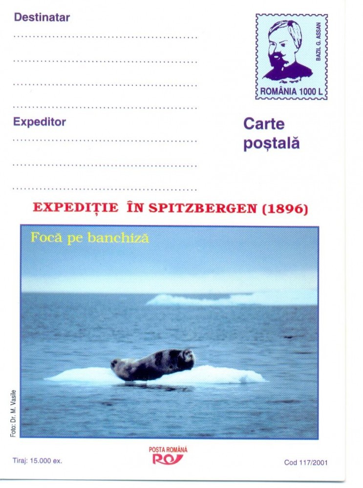 CP Z1147- EXPEDITIE IN SPITZBERGEN(1896)-FOCA PE BANCHIZA -NECIRCULATA-STAREA CARE SE VEDE
