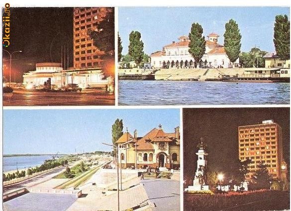 CP193-85 Braila -Hotelul ,,Traian" -Vedere din port, Gara Fluviala -Vedere de pe faleza -carte postala circulata 1985