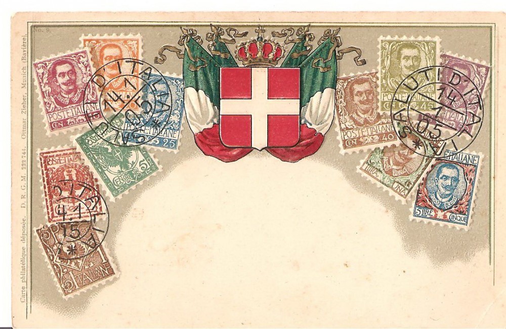 CPI (B2168) CARTE POSTALA ITALIANA CU TIMBRE IN RELIEF, NECIRCULATA, CU STAMPILA PE FATA CU DATA DE 14.1.05; ITALIA