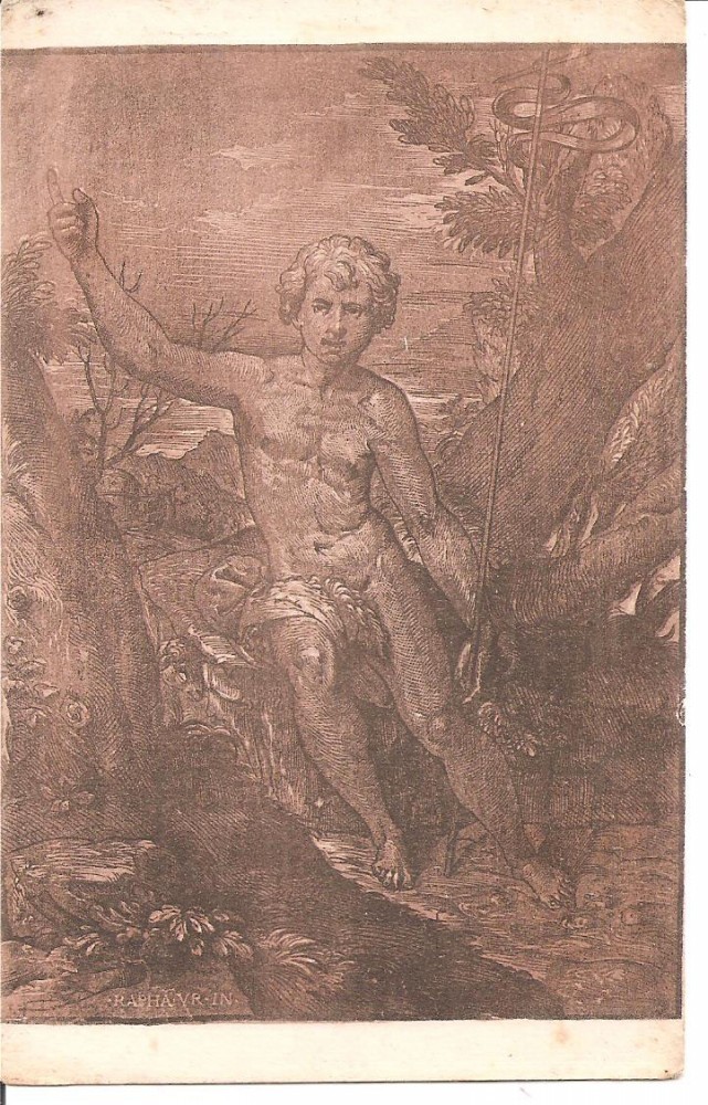 CPI (B5103) GALERIA UFFIZI. GRAVURA IN LEMN DE OGO DA CAPRI dupa un deen de RAFFAELLO, EDITATA LA FLORENTA