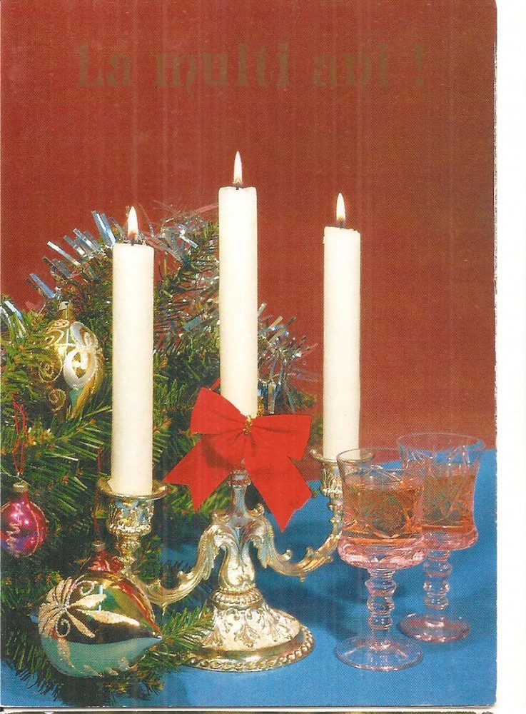 CPI (B5996) FELICITARE "LA MULTI ANI". 3 LUMANARI, 2 PAHARE CU SAMPANIE