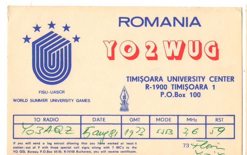 CPI (B8083) CARTE POSTALA - RADIOAMATORI, YO2WUG