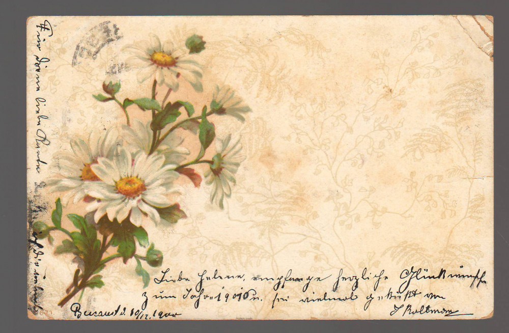 CARTE POSTALA ILUSTRATA - FELICITARE - CIRCULATA, 1901, STAMPILE, TIMBRU, COTUL DIN DREAPTA SU INDOIT CA IN FOTOGRAFIE.