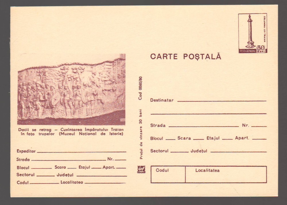 CPIB 24076 CARTE POSTALA - MUZEUL NATIONAL DE ISTORIE. CUVANTAREA IMPARATULUI TRAIAN IN FATA TRUPELOR, NECIRCULATA