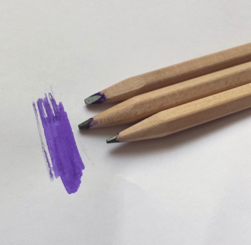 Pe poza se vede cum scrie in nuanta de mov dupa umezire