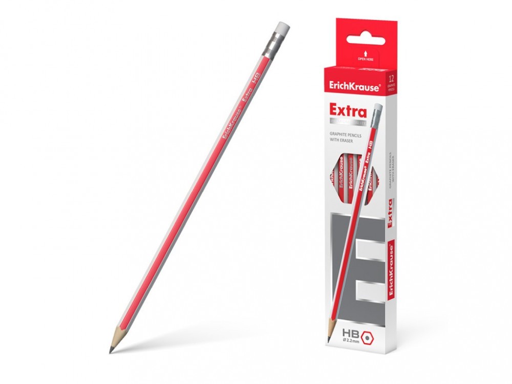 Creion hexagonal cu guma Extra HB 12 buc/cutie EK