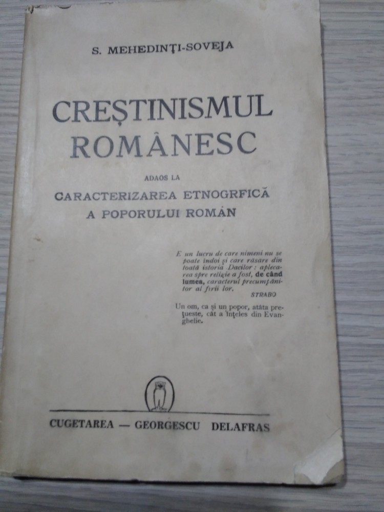 CRESTINISMUL ROMANESC - S. Mehedinti-Soveja - Edituta Cugetarea, 1941, 224 p.