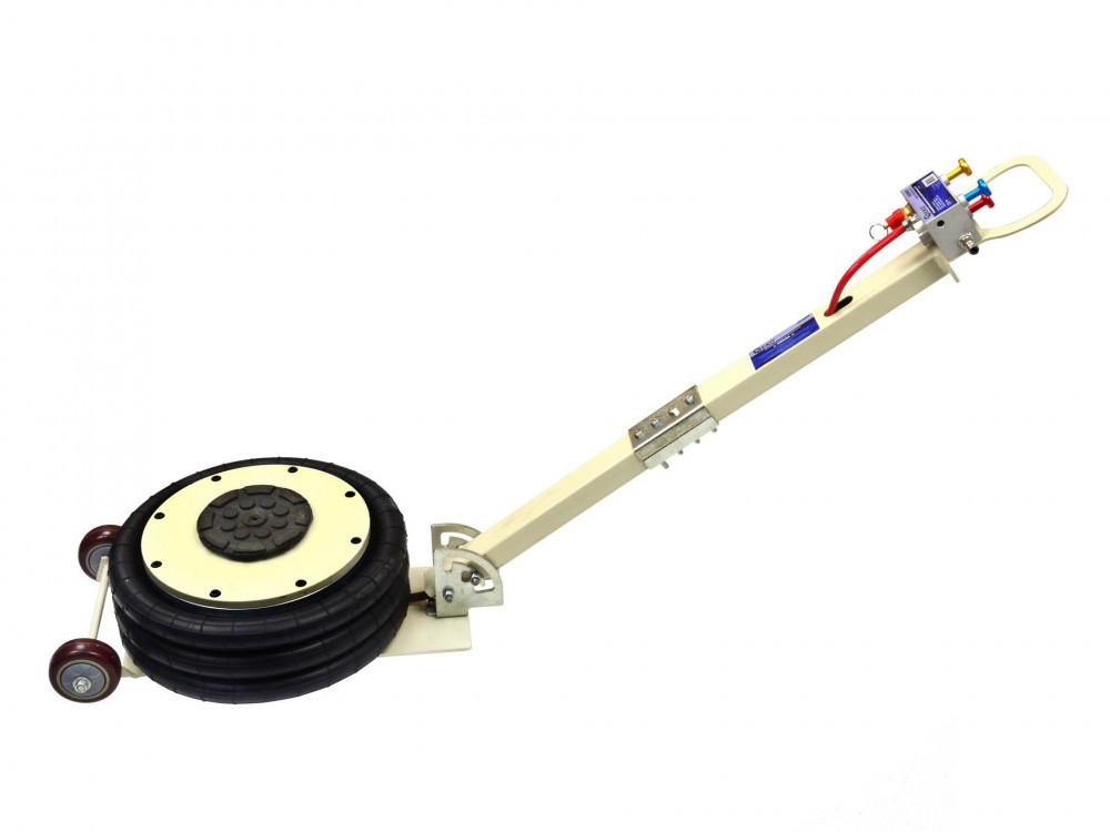 Cric pneumatic cu capacitatea maximă de ridicare de 6000 kg. Perna de ridicare este realizată din cauciuc ranforsat.Supapa de vid vă permite să evacuați aerul complet.. Caracteristicile produsului: reglarea înălțimii în intervalul de la 150 la 400 mm, supapa de alimentare și supapa de eliberare simplifică foarte mult lucrul, două roți și un mâner reglabil permit transportul ușor și rapid al ascensorului, un telescop de înaltă calitate din interiorul pernei asigură stabilitatea construcției în timpul ridicării, un tampon de cauciuc pe partea superioară a ascensorului împiedică ridicarea încărcăturii.. Specificații tehnice:. -Încărcare maximă: 6000 kg. -Înălțimea minimă de ridicare: 150 mm. -Înălțime maximă de ridicare: 400 mm. -Diametrul pernei de cauciuc: 330 mm. -Diametrul șaibei de cauciuc: 120 mm. -Presiune de lucru: 6 - 12 bari. -Presiunea de spargere: 30 bari. -Funcții suplimentare: supapa de siguranță la o presiune de 24 bar
