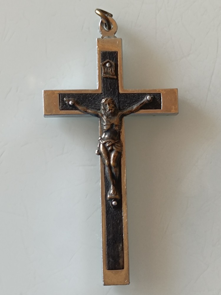 Cruce pectorală antică, metal si lemn