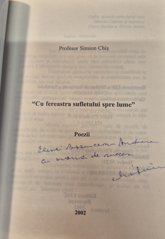 Cu fereastra sufletului spre lume Simion Chis cu autograf