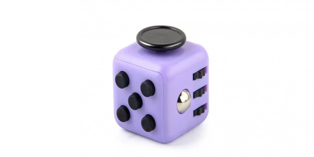 Cub antistres, fidget, mov cu butoane negre, 3x3x3 cm