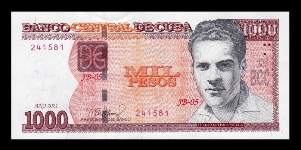 Splendida bancnota de 1000 Pesos din Cuba 2021 (P-132) în stare necirculatã (UNC).