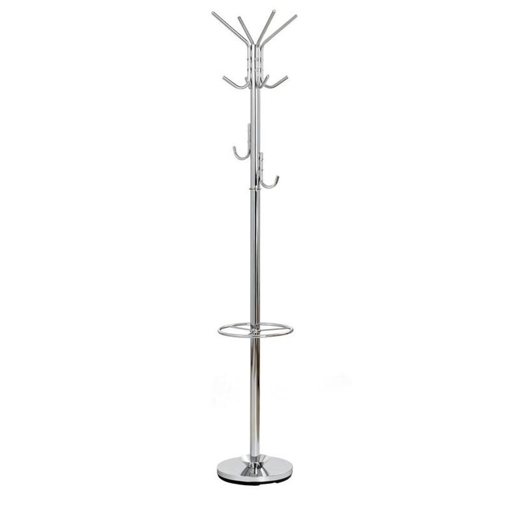 Cuier de podea cromat HM W24, robust, cu suport umbrela, 10 agatatori, argintiu