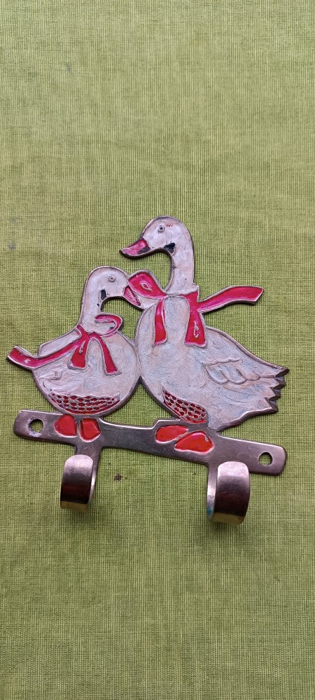 Este un cuier lucrat din alama cu doua ratuste emailate,