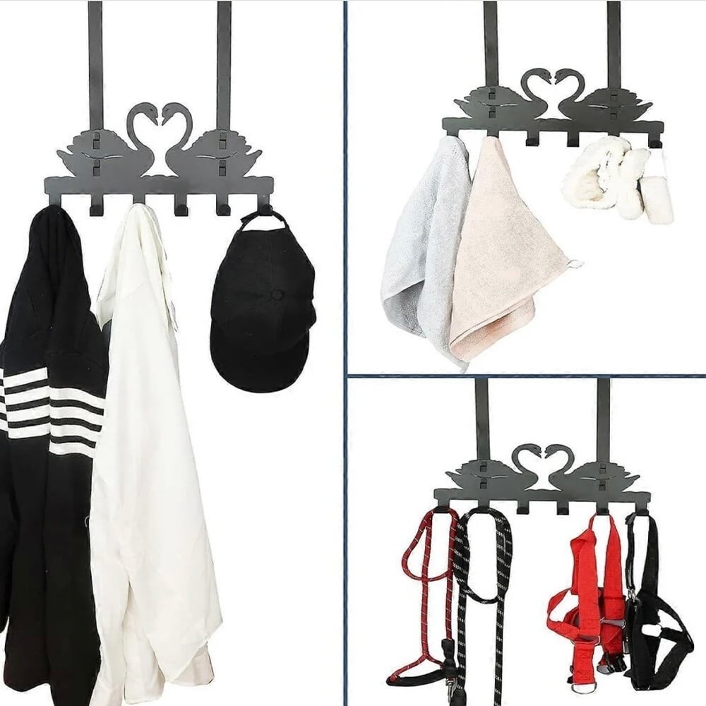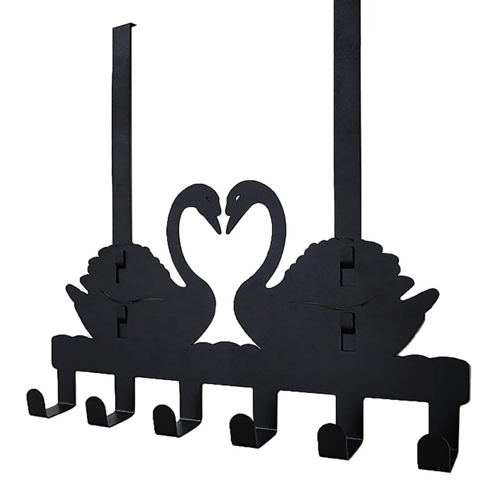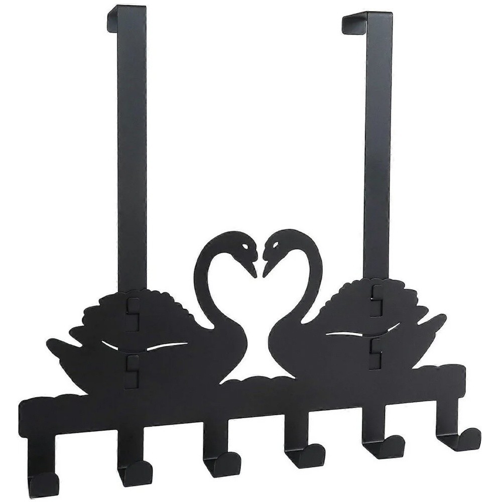 Cuier metalic pentru usa in forma de lebada, cu carlige – suport decorativ și practic pentru haine și accesorii, 33 x 18 cm, negru