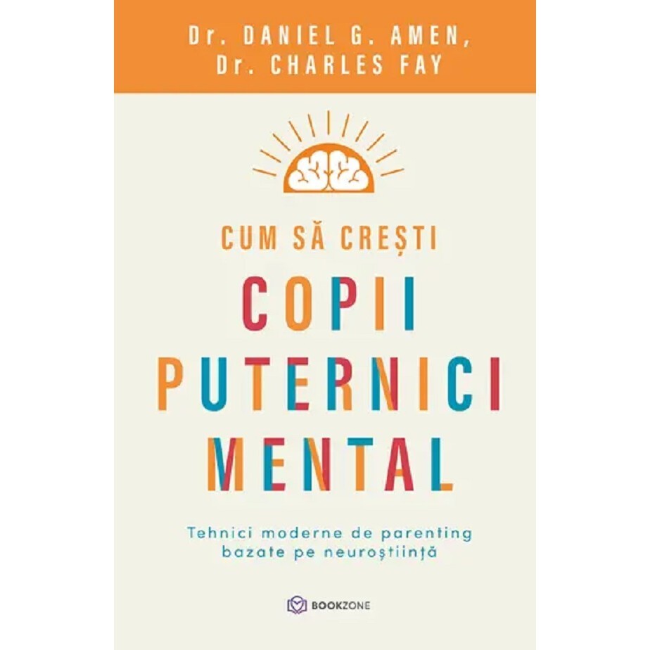 Cum sa cresti copii puternici mental. tehnici moderne de parenting bazate pe neurostiinta mi-as dori sa existe un manual pentru copii! cati dintre noi nu ne-am aflat macar o data in viata in situatia de a afirma sau macar a gandi asta? ei bine, l-ai gasit. "manualul" e aici! cum sa cresti copii puternici mental este ghidul care iti arata ce lipseste din majoritatea cartilor de parenting si vine cu o abordare inovatoare: cum sa intelegi si sa gestionezi atat creierul, cat si mintea copilului tau (si pe ale tale) astfel incat sa cresti tineri puternici mental. oferind solutii clare si exemple de conversatii pentru problemele de zi cu zi, de la crize de furie si rebeliune, pana la bullying si conflicte de putere, acest ghid iti pune la dispozitie instrumente simple si eficiente care functioneaza, chiar si in cele mai dificile momente. - ghidul parintilor determinati sa creasca oameni uimitori. intr-o perioada in care multi copii si adolescenti se confrunta cu dificultati, parintii sunt in cautarea unor solutii pentru a-si creste copiii sanatosi din punct de vedere mental si pregatiti sa infrunte obstacolele vietii. in sfarsit, ajutorul bazat pe dovezi este acum disponibil pentru acei parinti care, desi isi dau toata silinta si isi doresc sa ofere tot ce e mai bun copiilor lor, au sentimentul ca nu reusesc sa faca fata provocarilor zilnice, simtindu-se adesea coplesiti. dr. daniel amen, autor de bestsellere new york times si neuropsihiatru, alaturi de dr. charles fay, psiholog pentru copii, iti dezvaluie ceea ce lipseste din majoritatea cartilor de parenting: abordarea simultana a creierului si mintii copilului (si ale parintilor), pentru a creste tineri puternici mental. aceasta combinatie eficienta ofera solutii care functioneaza, chiar si in momente grele. in aceasta carte revolutionara, in care neurostiinta intalneste iubirea si ratiunea, parintii vor gasi instrumente concrete si utile pentru a ajuta copiii de toate varstele sa depaseasca probleme comportamentale precum rebeliunea, crizele de furie si conflictele de putere, ajutandu-i astfel sa devina responsabili, increzatori, amabili si rezilienti. atunci cand doi pionieri in domeniul stiintei creierului si al psihologiei parentingului se implica in rezolvarea celor mai mari provocari cu care se confrunta copiii din ziua de azi, rezultatul este un ghid dinamic si bazat pe cercetari stiintifice, care raspunde unei cereri frecvent auzite printre parinti: mi-as dori sa existe un manual pentru copii! ei bine, acum aveti unul deosebit - o harta clara pentru a-i ajuta pe copii sa isi construiasca o viata mai buna si o relatie mai sanatoasa cu voi! - phillip c. dr. phil mcgraw, ph.d. este un ghid complet care ofera parintilor strategii clare si aplicabile pentru a creste copii rezilienti intr-o lume tot mai complexa. fiecare capitol este plin de sfaturi utile, iar intreaga carte reflecta o filosofie profunda despre ce au nevoie copiii si familiile noastre in aceasta era. - michael gurian, fondatorul gurian institute si autor al bestsellerelor the wonder of boys si the wonder of girls ca dovada a eficientei sale, patru generatii din familia mea au efectuat scanari spect ale creierului, iar utilizarea acestor informatii din carte a adus schimbari pozitive semnificative in relatiile noastre de familie, de-a lungul generatiilor! - dr. earl r. henslin , psy.d., b.c.e.t.s., diplomat american academy of traumatic stress si autor al cartii this is your brain on joy s-ar putea sa te intrebi: "unde era aceasta carte cand eram copil?" pana cand iti vei da seama cu bucurie ca nu doar ca poti aplica aceste idei pentru a-i ajuta pe copiii tai sa prospere, dar si pe tine insuti. - dr. darria long , autor national bestseller al cartii mom hacks pentru a o face mai practica, autorii includ la sfarsitul fiecarui capitol o lista concisa de pasi de actiune. aceasta carte profunda m-a atins la nivel emotional, inspirandu-ma sa ma dedic mai mult in a deveni un tata mai constient si mai eficient. - larry kerby, mba, speaker, pasionat de parenting si life coach