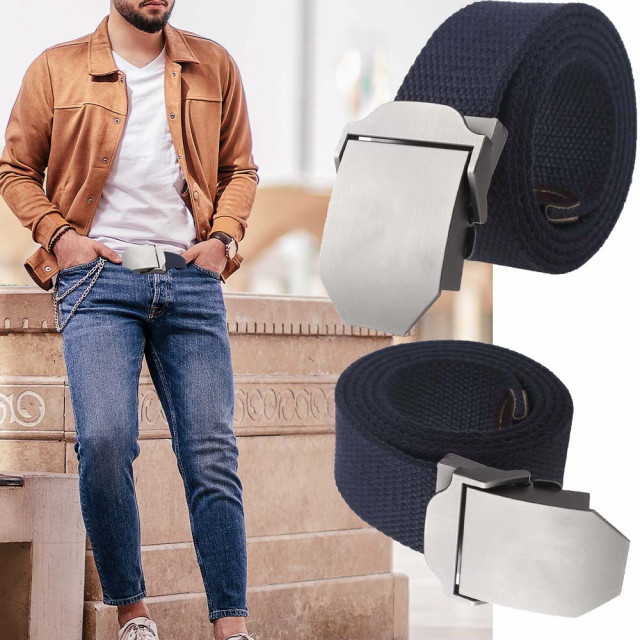 Curea casual Pufo Elite pentru barbati 3.8 x 120 cm, rezistent, albastru
