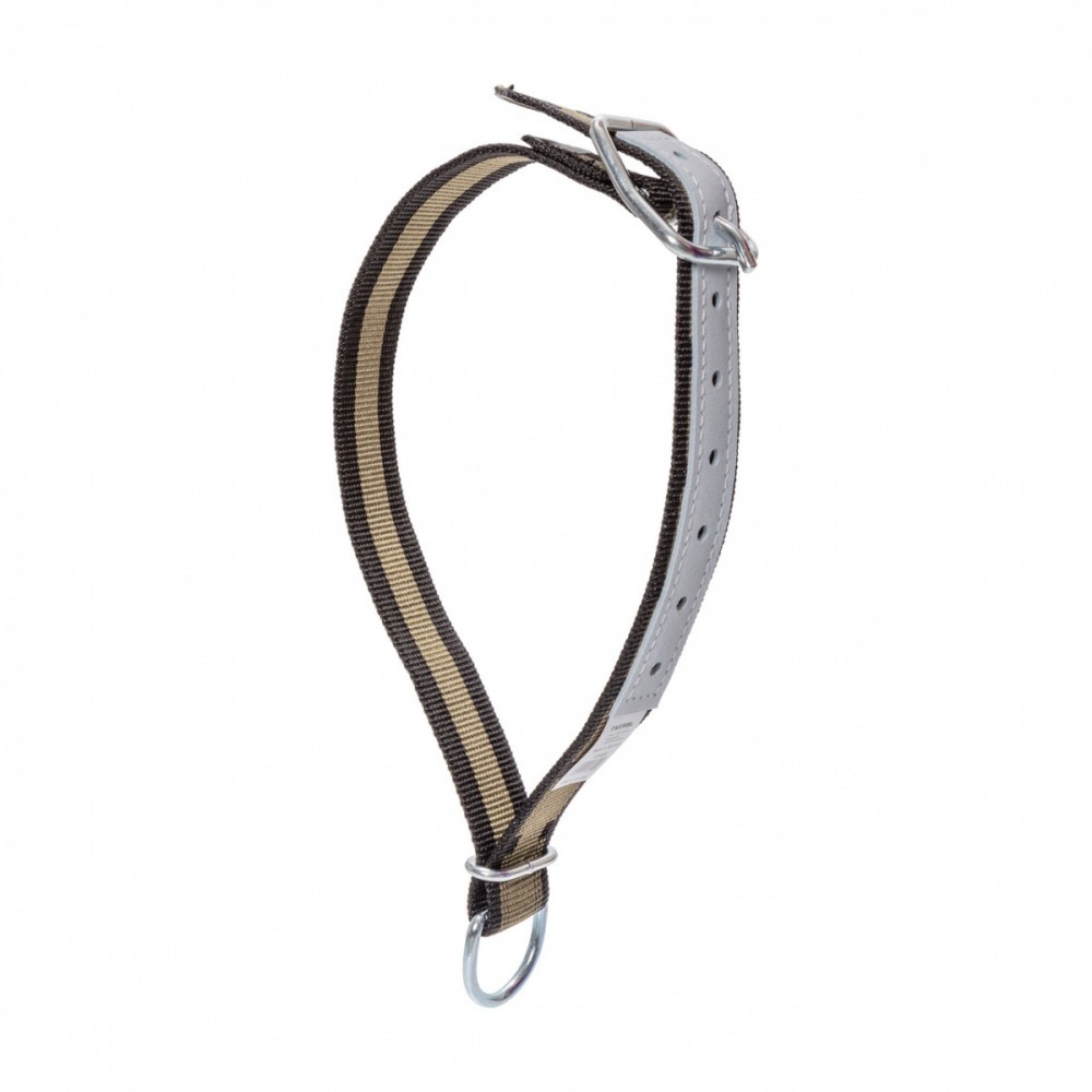 Curea pentru vaci cu verigă de forma D. Curea universală pentru viței și vaci din nailon de înaltă calitate, dotată cu o verigă de forma D. Piesele metalice sunt galvanizate, protejând astfel cureaua împotriva coroziunii. Este întărită cu piele, asigurând durabilitate și rezistență excelentă. Se reglează cu ajutorul cataramei reglatoare, astfel se poate potrivi animalelor de diferite mărimi și greutăți. Date tehnice: Lungime curea: 85 cm. Lățime: 4 cm. Culoare: negru cu verde măsliniu.