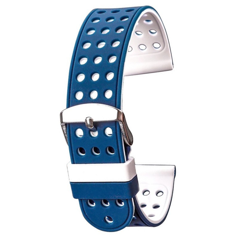 Curea silicon doua fete compatibila Huawei Watch GT 2 46mm, telescoape normale, Alb/Albastru
