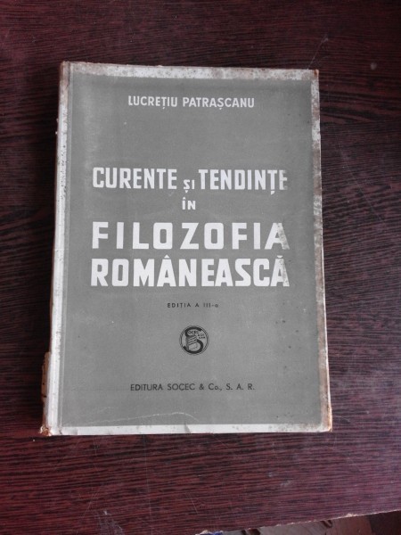 CURENTE SI TENDINTE IN FILOZOFIA ROMANEASCA - LUCRETIU PATRASCANU
